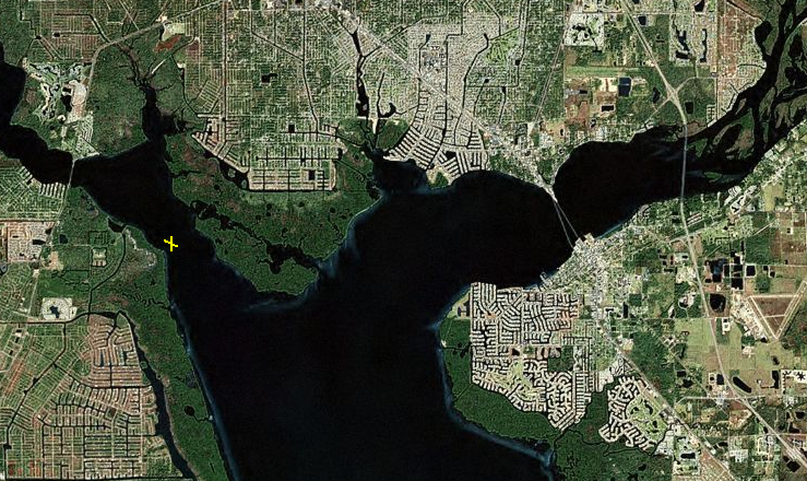 The left fork is the Myakka River the Yellow X is Cattle Dock Point, the